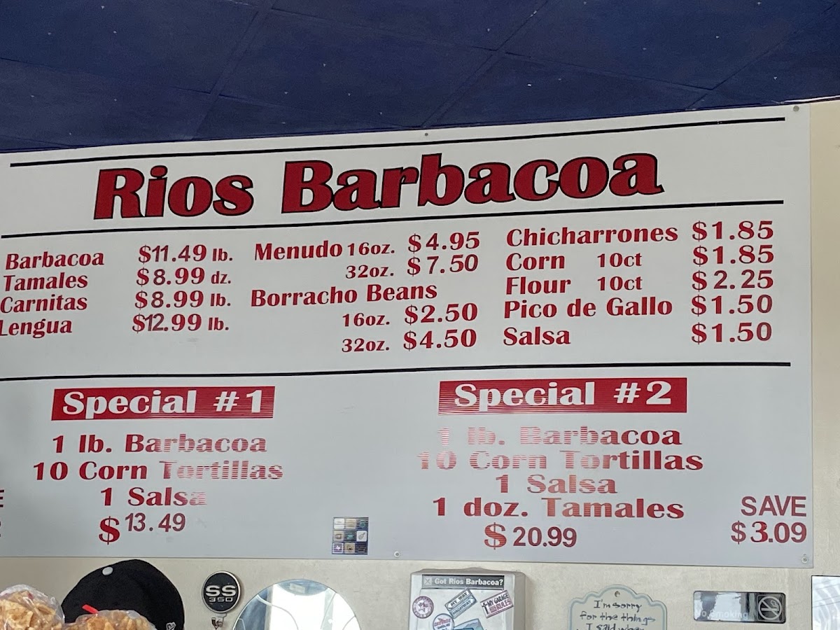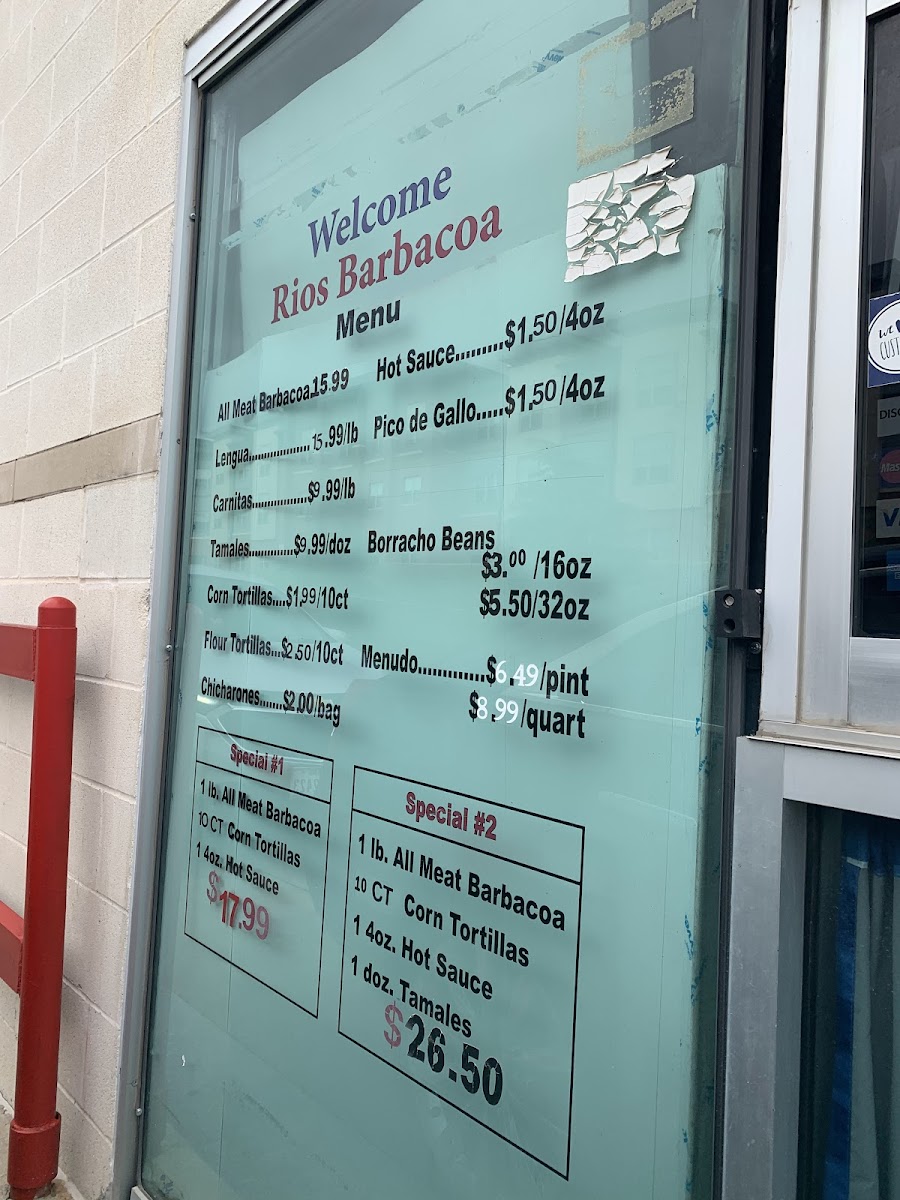 Rios Barbacoa Menu